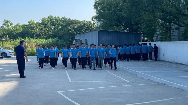 “稍息,立正,向右看齐,向前看。”随着教官一声声口号的响起,祈禧(集团)全体职工在坎墩厂区内开始了为期两天的军训!本次军训内容主要包括消防安全培训和消防演练,以及站军姿、齐步走、跑步走、敬礼、停止间转法、基础队列动作要领等项目。为普及消防安全知识,有效预防和减少消防事故的发生,切实做好消防安全宣传工作,祈禧(集团)与坎墩消防队联合组织了这次全厂范围内的消防知识培训和消防应急预案实战演练,以演代练,防患未“燃”,传递消防安全“正能量”。消防安全演练8月11日上午,坎墩消防队队长戎高明结合近期发生的火灾案例,用通俗易懂的语言,向大家详细介绍了消防安全知识,以及发生火情后如何进行逃生自救、拨打119火警电话时应该注意的事项。并提醒大家要定期检查身边的消防安全