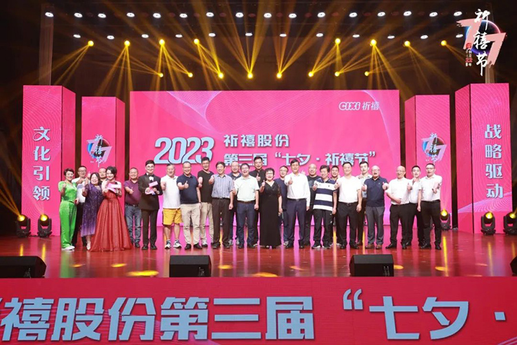 8月22日七夕夜,以“文化引领战略驱动”为主题的2023祈禧股份第三届“七夕·祈禧节”在慈溪坎墩街道文体中心隆重举行。公司全体员工、代理商、合作伙伴、兄弟企业代表等社会各界人士齐聚一堂,在这个浪漫的夜晚,一起见证祈禧成立22周年荣耀时刻,以更坚定的信念、更饱满的热情、更务实的作风、更强大的合力,开启企业高质量发展的新篇章。晚会现场还通过微信直播和抖音直播以视频的形式向全国各地关心和支持祈禧的朋友们进行线上同步的实时直播。合作共赢并肩行祈禧22年,从中国家电之乡慈溪起航,坚持初心,一步一个脚印前行,才得以从一个产品到一个产业,从一家企业到一个行业。在使命引领、愿景驱动、抢抓机遇,做大做强。祈禧股份股东、甬潮资本董事长叶建荣先生为本届祈禧节致辞,叶董表示: