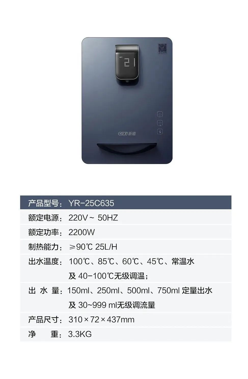 近日,祈禧新出了一款即热式壁挂饮水机(YR-25C635),它拥有速热秒沸技术,鲜活热水,触手可得,40-100℃随心调温,想要几度就出几度,数秒就能让你喝到一杯舒心的热水。