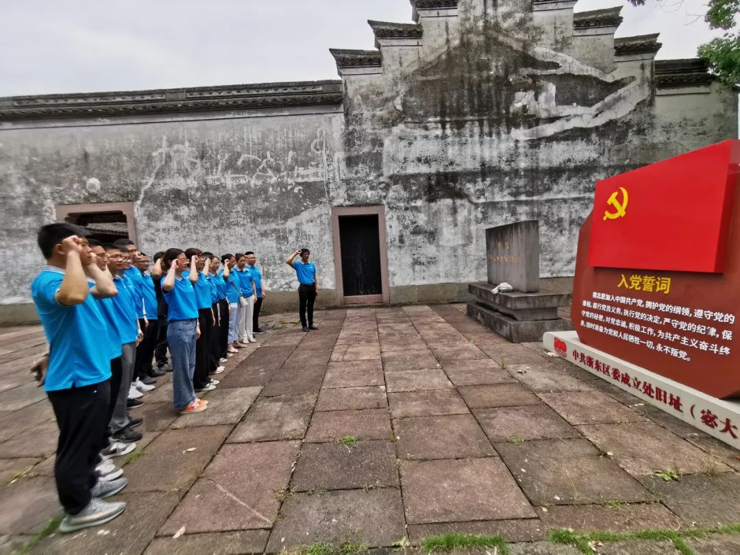 纪念馆内丰富的图片和实物资料,展示了浙东抗日根据地创立和发展的历史以及三北大地的抗战史实。大家边走边看,不时驻足参观,认真聆听浙东敌后抗日根据地的风雨历史,在图文并茂的展陈中缅怀革命先烈,重温峥嵘岁月。随后,党员们还在鲜红的党旗前重温了入党誓词,进一步坚定入党使命和奋斗初心。